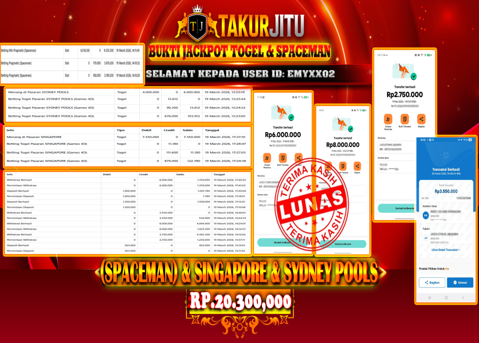 JACKPOT!!! DI JAPAN POOLS & SINGAPORE & SPACEMAN (SLOT & TOGEL) SEBESAR Rp.20,300,000