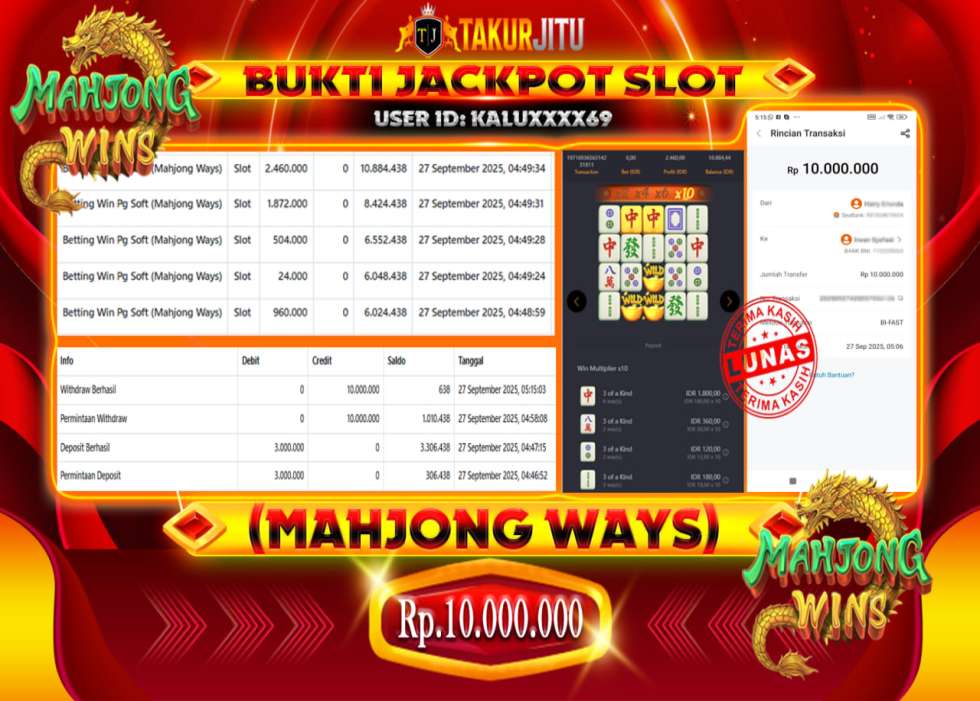 JACKPOT!!! DI MAHJONG WAYS ( SLOT) SEBESAR Rp. 10,000,000