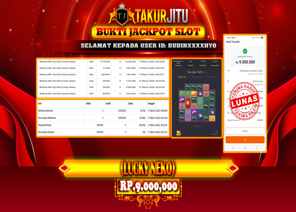 JACKPOT!!! DI (LUCKY NEKO (SLOT) SEBESAR Rp.9,000,000