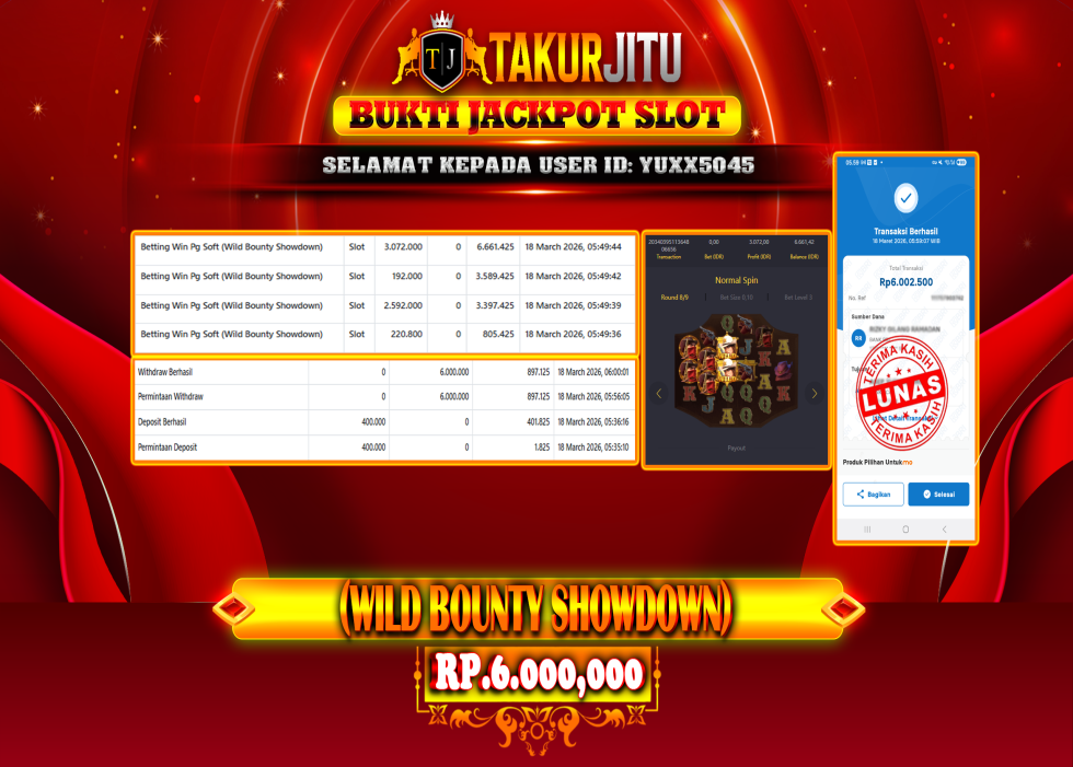 JACKPOT!!! DI (WILD BOUNTY SHOWDOWN (SLOT) SEBESAR Rp.6,000,000