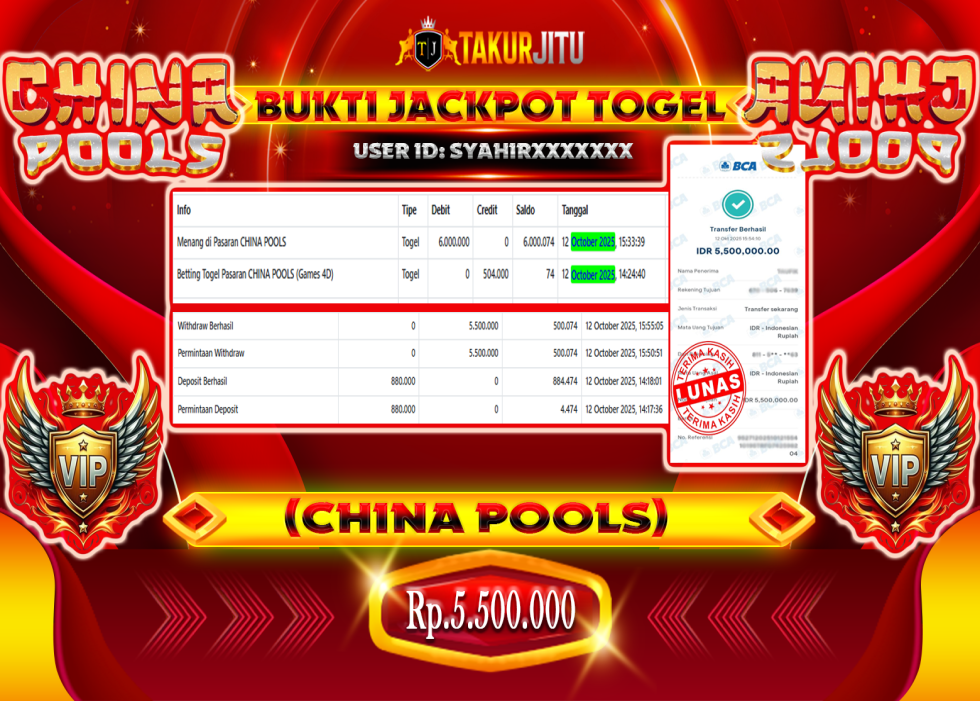 JACKPOT!!! DI CHINA POOLS ( TOGEL ) SEBESAR Rp. 5,500,000