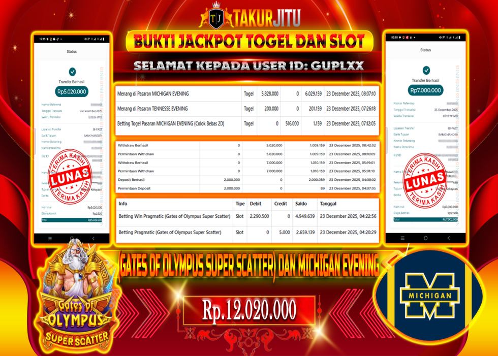 JACKPOT!!! DI Gates of Olympus Super Scatter & MICHIGAN EVENING ( SLOT & TOGEL ) SEBESAR Rp. 12,020,000