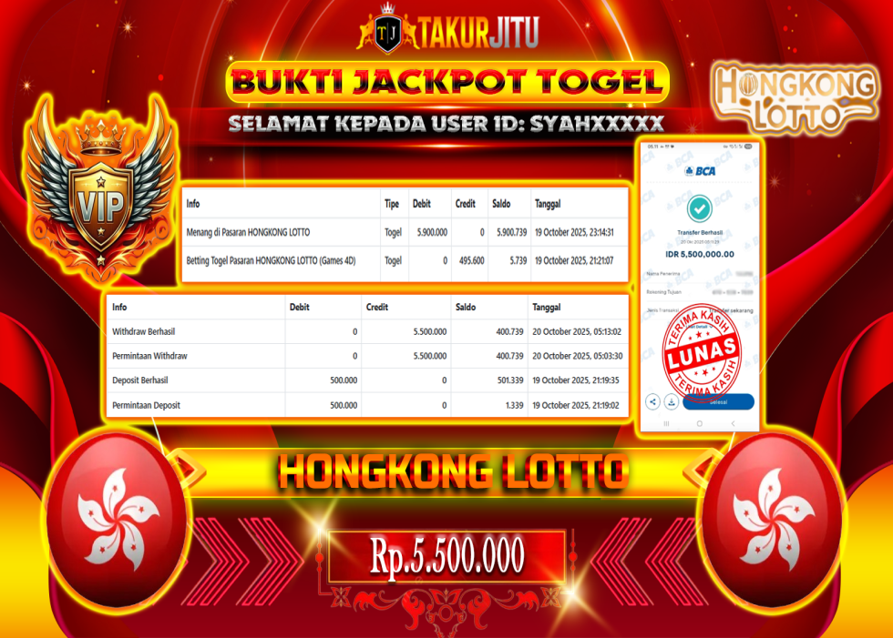 JACKPOT!!! DI HONGKONG LOTTO ( TOGEL ) SEBESAR Rp. 5,500,000