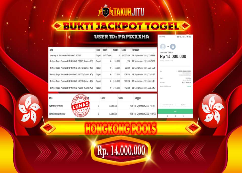 JACKPOT!!! DI HONGKONG POOLS (TOGEL) SEBESAR Rp. 14,000,000