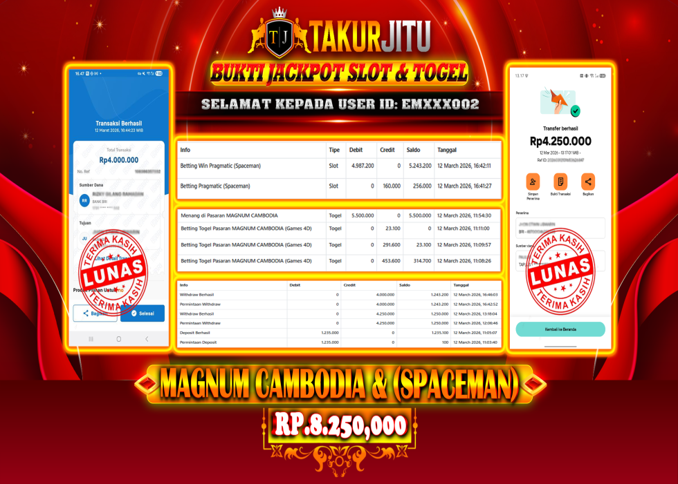 JACKPOT!!! DI MAGNUM CAMBODIA & SPACEMAN (SLOT & TOGEL) SEBESAR Rp.8,250,000