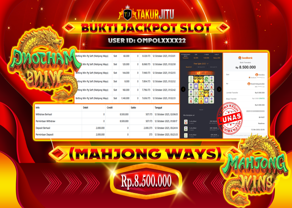 JACKPOT!!! DI MAHJONG WAYS ( SLOT) SEBESAR Rp. 8,500,000