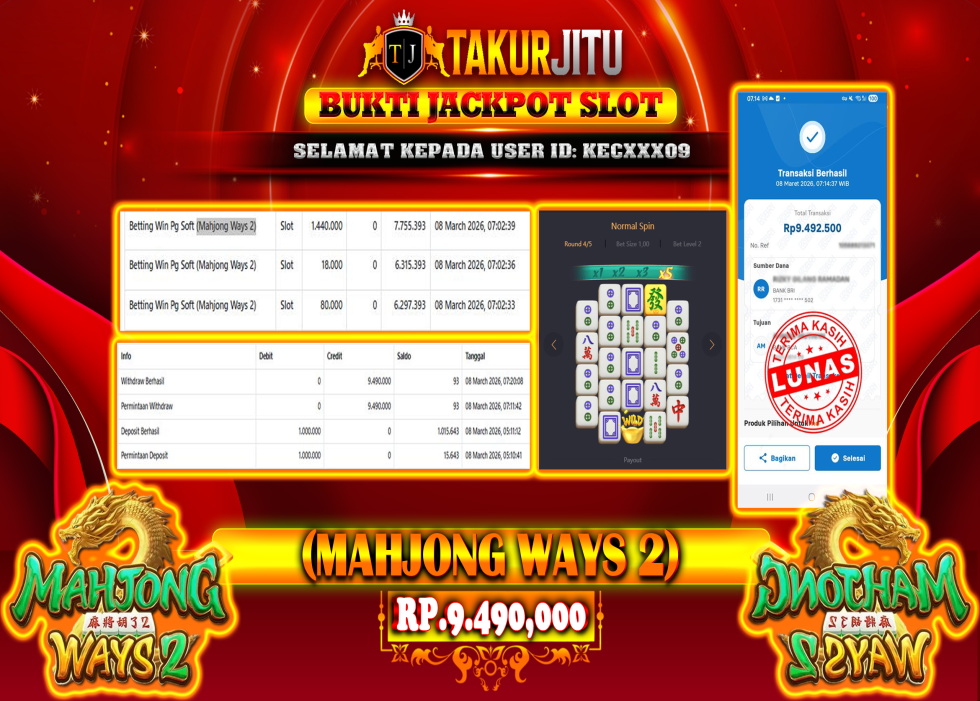 JACKPOT!!! DI MAHJONG WAYS 2 (SLOT) SEBESAR Rp.9,490,000