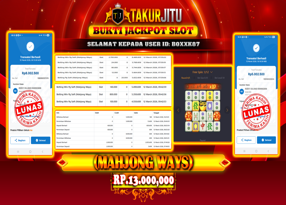 JACKPOT!!! DI MAHJONG WAYS (SLOT) SEBESAR Rp.13,000,000