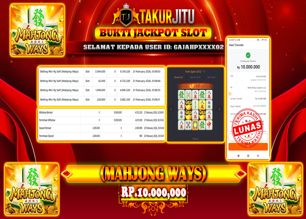 JACKPOT!!! DI MAHJONG WAYS (SLOT) SEBESAR Rp. 10,000,000