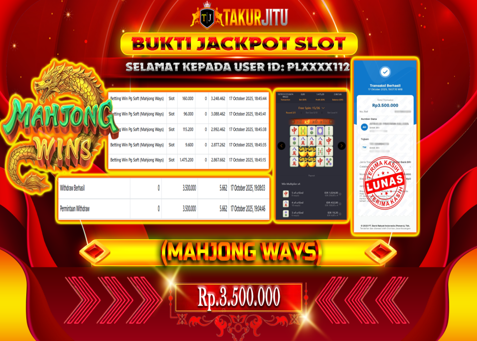 JACKPOT!!! DI MAHJONG WAYS ( SLOT ) SEBESAR Rp. 3,500,000