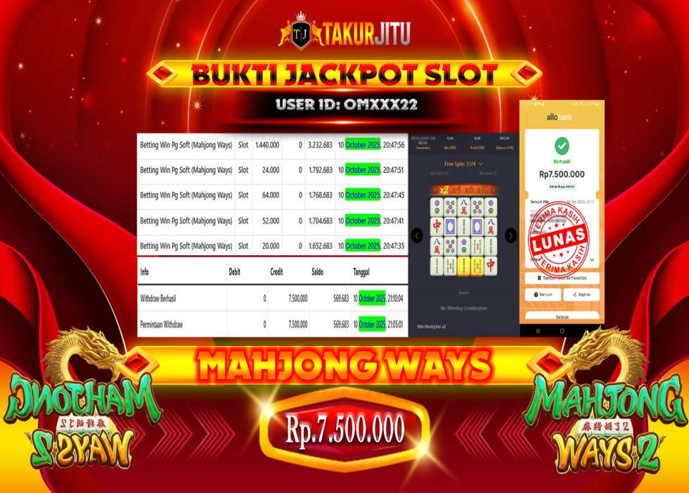 JACKPOT!!! DI MAHJONG WAYS ( SLOT) SEBESAR Rp. 7,500,000