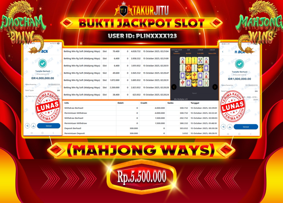 JACKPOT!!! DI MAHJONG WAYS ( SLOT) SEBESAR Rp. 5,500,000