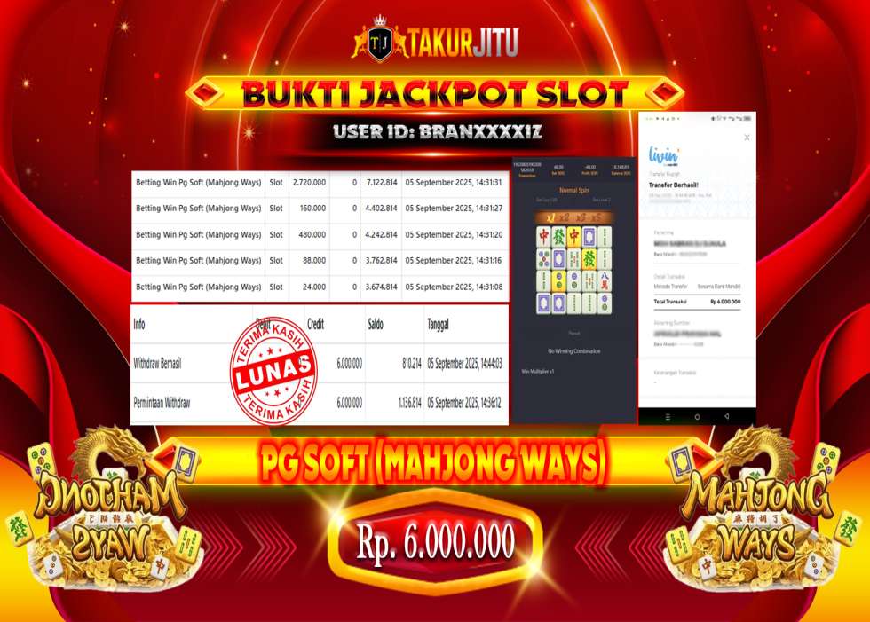 JACKPOT!!! DI MAHJONG WAYS2 ( SLOT) SEBESAR Rp. 6,000,000