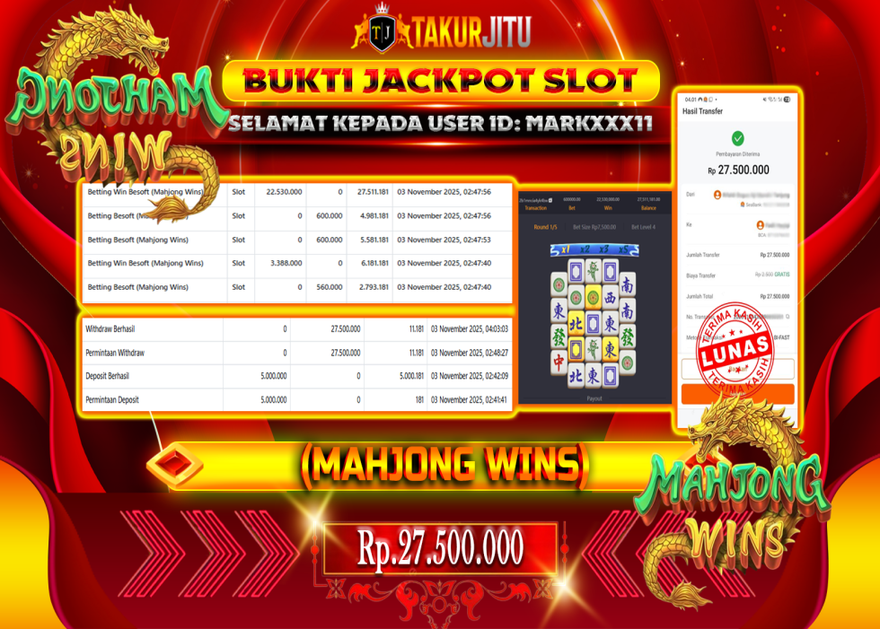 JACKPOT!!! DI MAHJONG WINS ( SLOT ) SEBESAR Rp. 27,500,000
