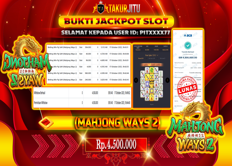 JACKPOT!!! DI MAHKONG WAYS 2 ( SLOT ) SEBESAR Rp. 4,500,000