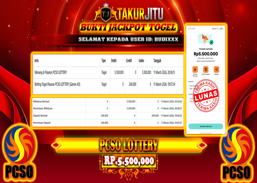 JACKPOT!!! DI PCSO LOTTERY (SLOT) SEBESAR Rp.5,500,000