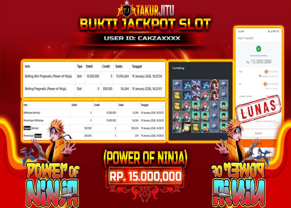 JACKPOT!!! DI POWER OF NINJA ( SLOT) SEBESAR Rp. 15,000,000