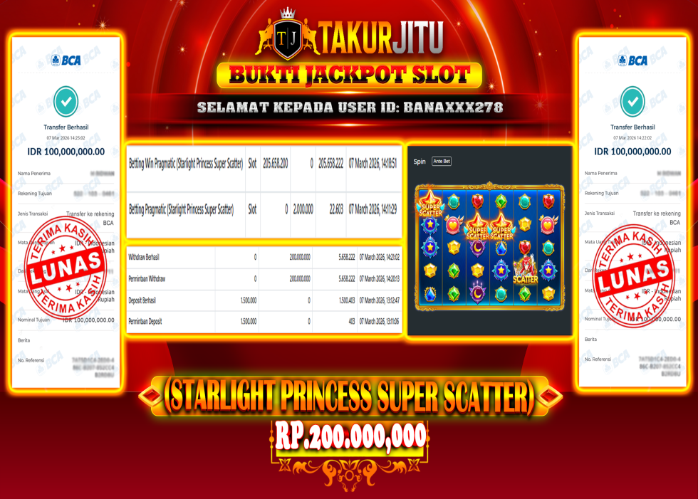 JACKPOT!!! DI Starlight Princess Super Scatter (SLOT) SEBESAR Rp.200,000,000