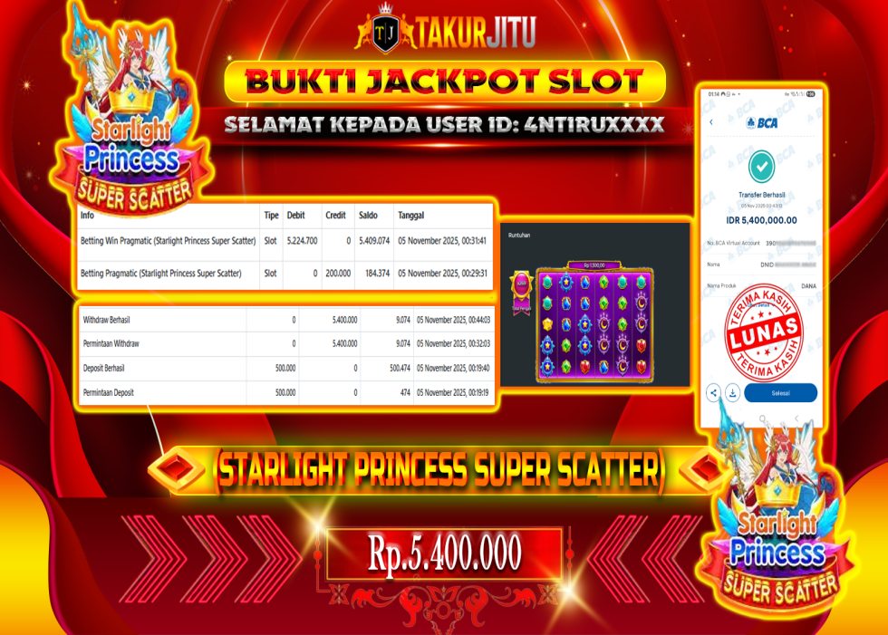 JACKPOT!!! DI STARLIGHT SUPER SCATTER ( SLOT ) SEBESAR Rp. 5,400,000