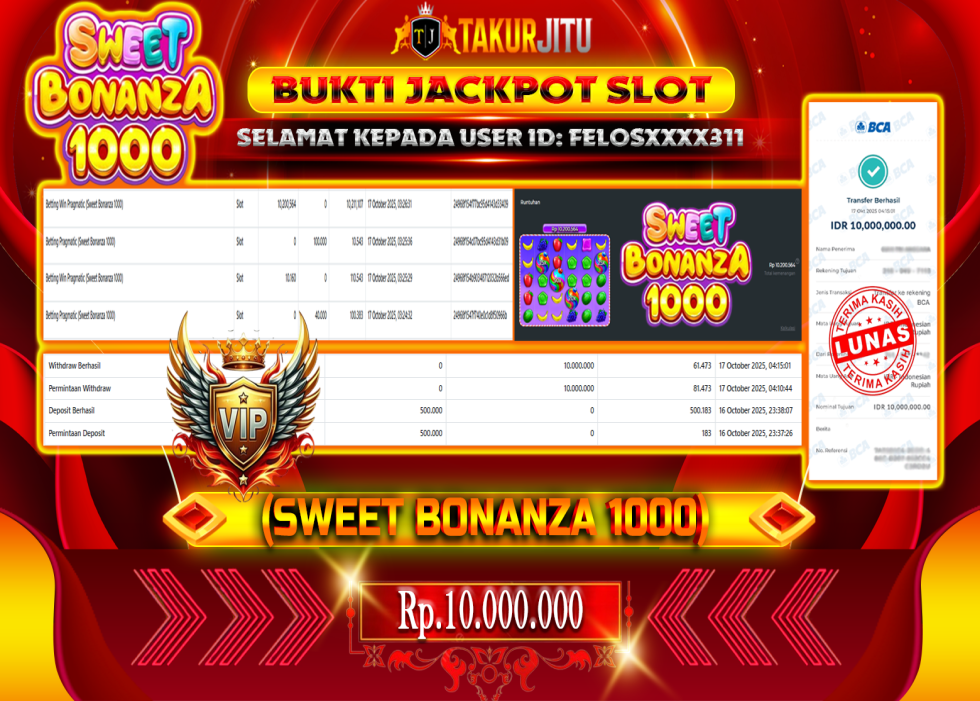 JACKPOT!!! DI SWET BONANZA 1000 ( SLOT ) SEBESAR Rp. 10,000,000