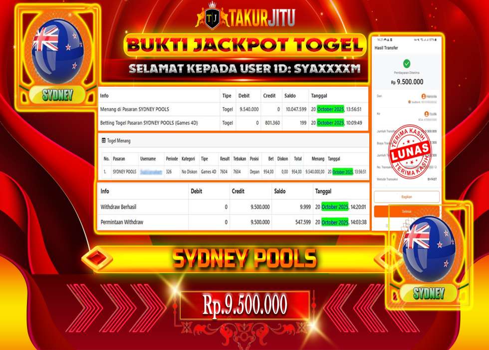 JACKPOT!!! DI SYDNEY POOLS ( TOGEL ) SEBESAR Rp. 9,500,000