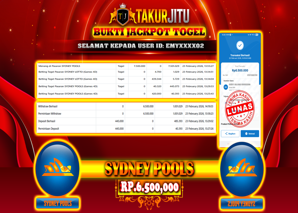 JACKPOT!!! DI SYDNEY POOLS (TOGEL) SEBESAR Rp. 6,500,000