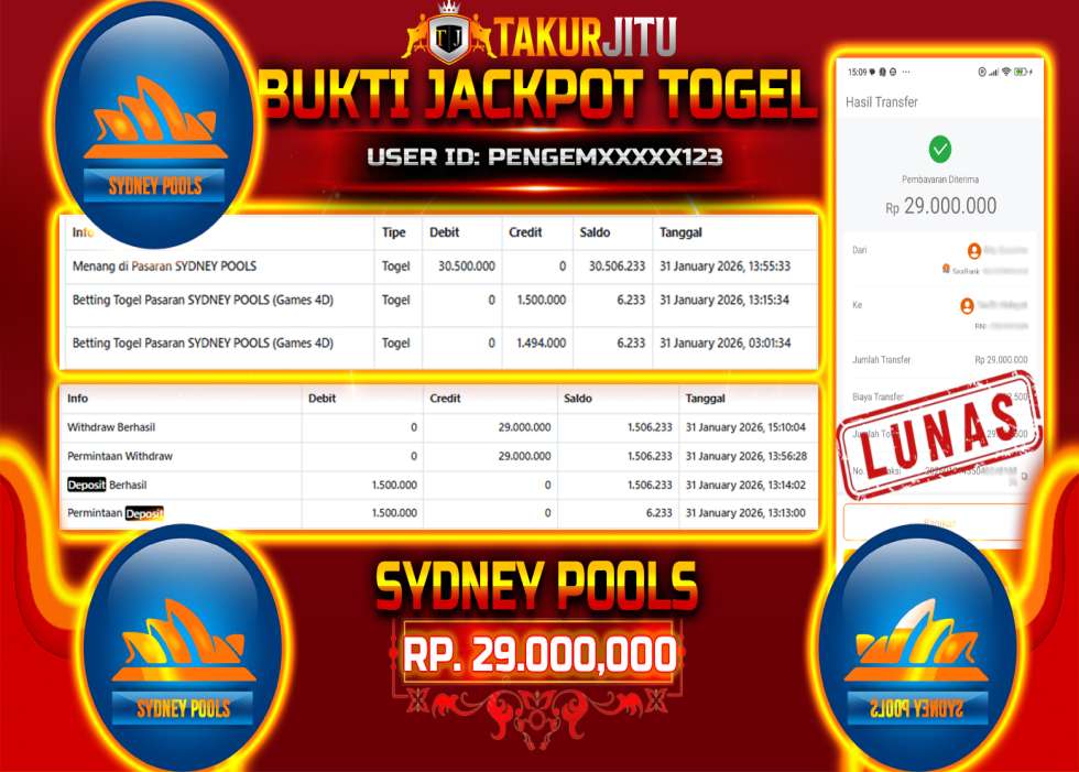 JACKPOT!!! DI SYDNEY POOLS (TOGEL) SEBESAR Rp. 29,000,000