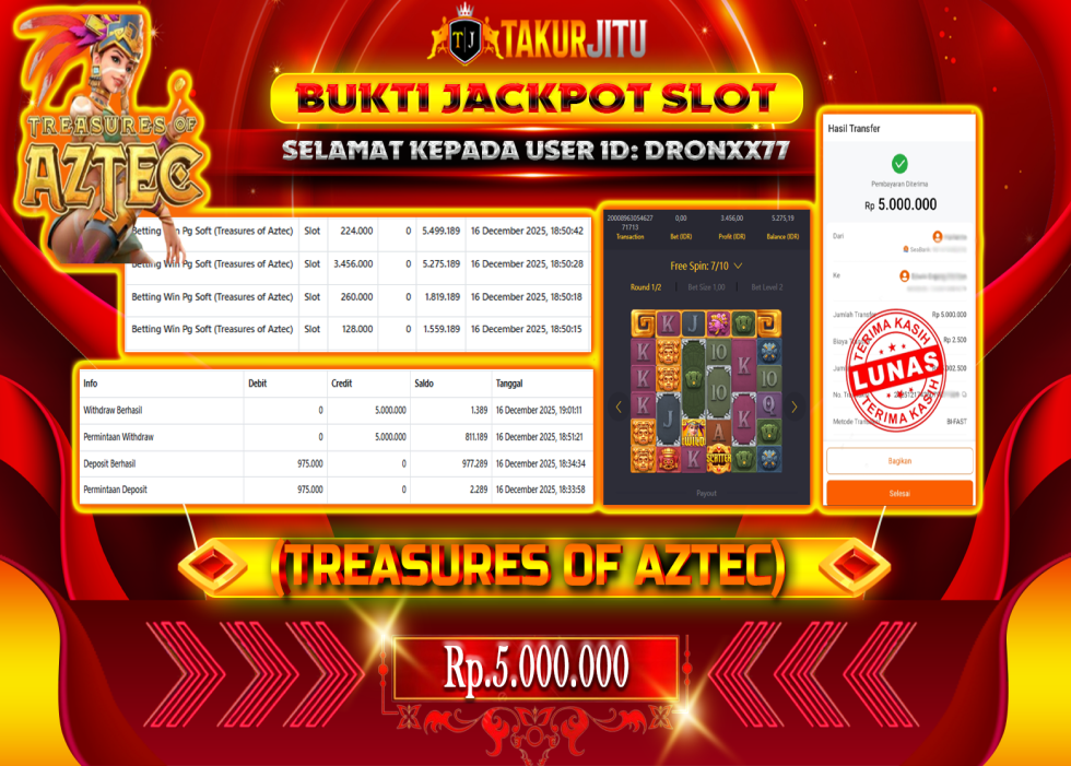 JACKPOT!!! DI Treasures of Aztec ( SLOT ) SEBESAR Rp. 5,000,000