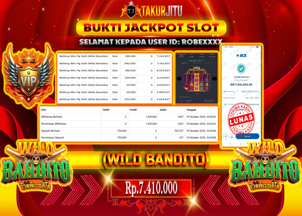 JACKPOT!!! DI WILD BANDITO ( SLOT ) SEBESAR Rp. 7,410,000