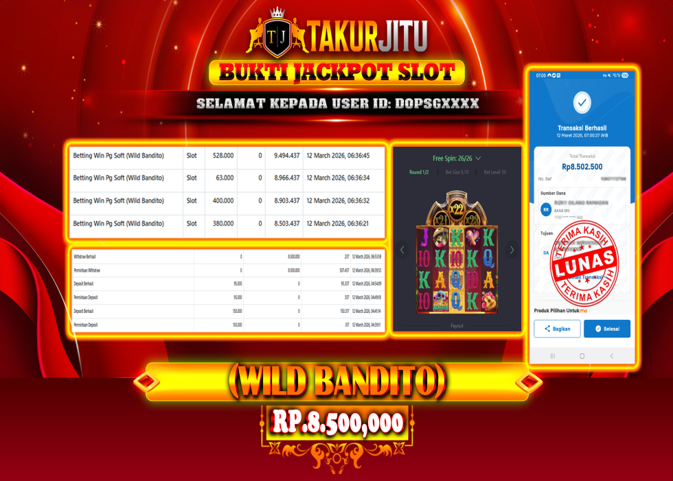 JACKPOT!!! DI WILD BANDITO (SLOT) SEBESAR Rp.8,500,000