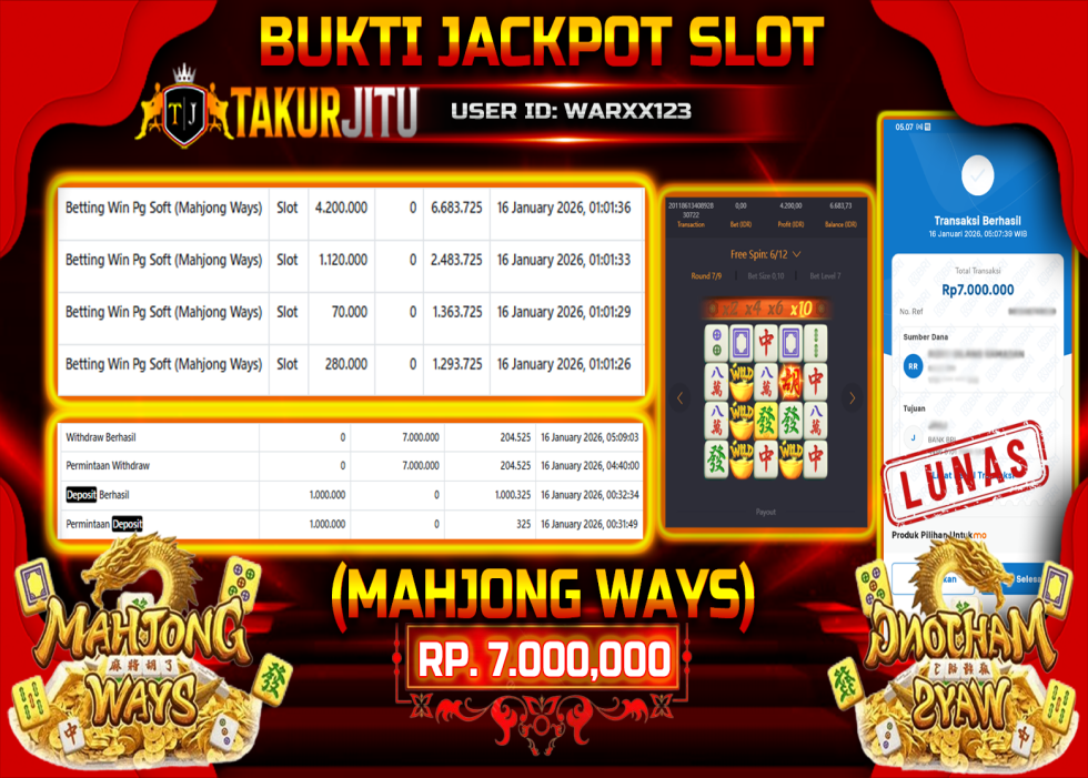 JACKPOT!!! MAHJONG WAYS ( SLOT) SEBESAR Rp. 7,000,000